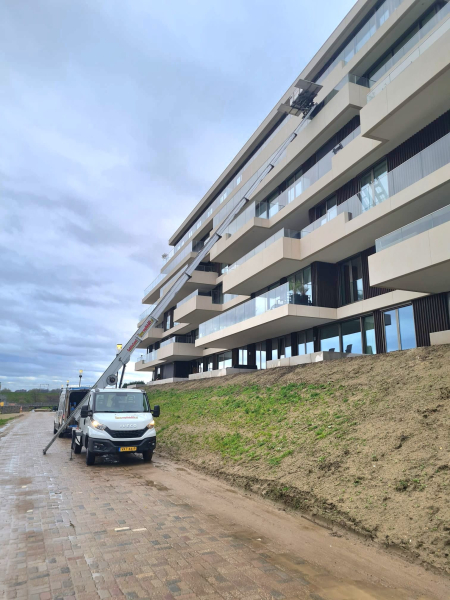 In short, our removal lift can lift everything that fits through the window (up to 400 kilos and at a maximum of 27 meters high, 8th floor). We also have a removal lift available on request that can reach a height of 30 meters.